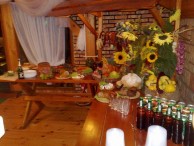To wszystko daje znakomite warunki do zorganizowania przyjęcia weselnego. Wieloletnie doświadczenie w organizacji przyjęć okolicznościowych pomoże nam w przygotowaniu wesela zgodnie z Państwa oczekiwaniami. Zapewniamy organizacje przyjęcia weselnego do 160 osób. Doskonałym dodatkiem jest także "STÓŁ WIEJSKI", który staje się powoli jedną z głównych kulinarnych atrakcji organizowanych przez nas wesel! Starannie dobrane regionalne wędliny, kiełbasy oraz smalec wyrabiany tradycyjną metodą zadowolą gusta najbardziej wymagających smakoszy. Produktów, które oferujemy, nie dostaną Państwo w zwykłych sklepach a ich smak na długo pozostanie w Waszej pamięci. W skład zestawu wchodzą na przykład: szynka z kością, kiełbasa myśliwska i wiejska, kabanosy, pasztetowa, kaszanka, wędzony boczek, salceson biały i czarny, smalec topiony w wiejskim garnku, ogórki małosolne, duży bochen chleba biesiadnego…